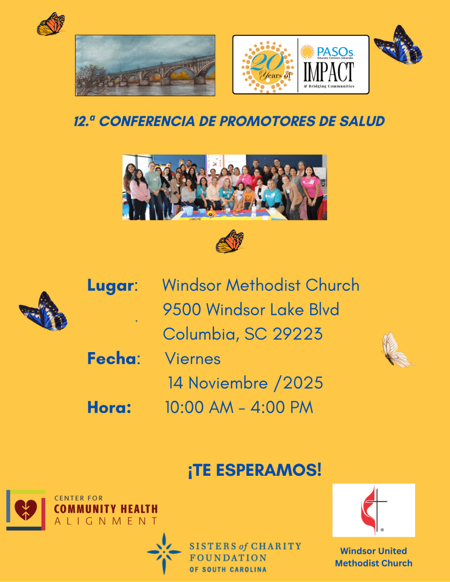 Join us on Friday, November 14th, from 10:00 AM to 4:00 PM in Columbia, SC, for the 12th Annual PASOs Community Health Worker Conference. This grassroots leadership development event will bring together CHWs and community allies to share experiences, discuss innovative strategies for reaching Latino individuals and families, and explore new resources available in our communities. Conducted entirely in Spanish, the conference offers valuable networking opportunities and features a distinguished panel of community leaders addressing critical topics affecting our communities. Attendees will also benefit from a mental health session offering 1.5 CEUs for certified CHWs, along with other engaging activities designed to strengthen our collective impact. Don't miss this opportunity to connect, learn, and grow together as we continue empowering our communities!
