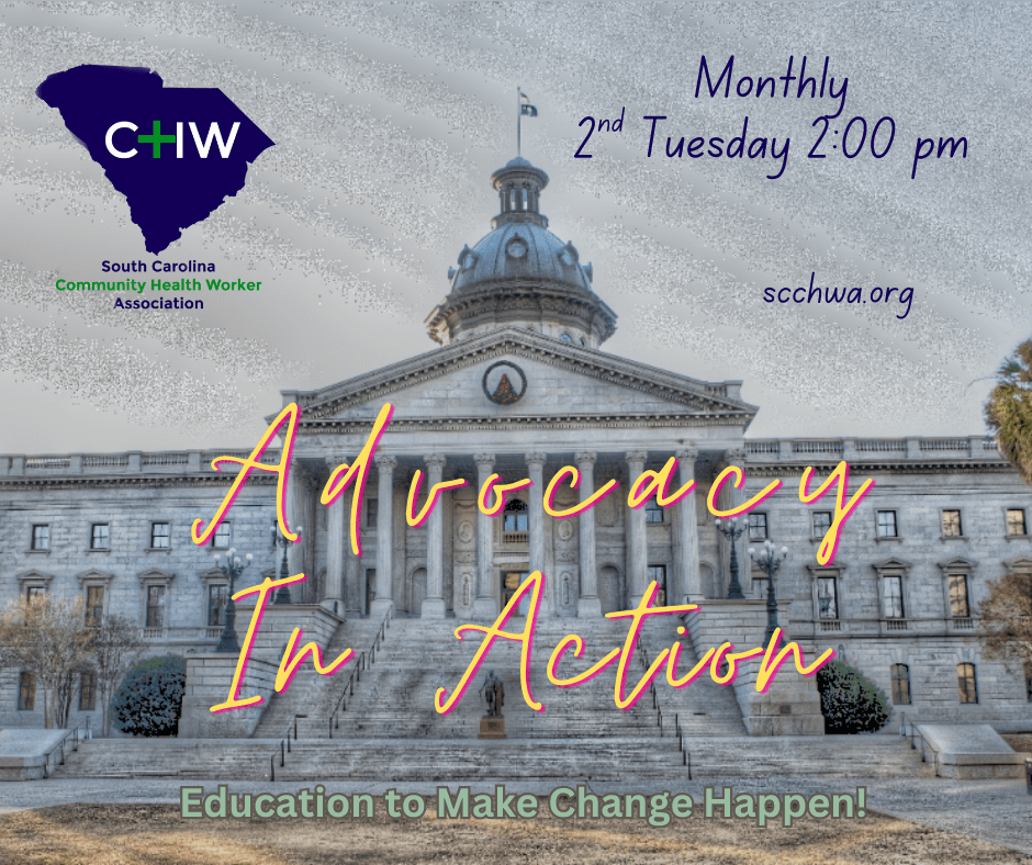 The CHW Advocacy in Action Committee is kicking off 2026 with purpose. After laying the foundation in 2025, we’re now pushing for sustainable financing, professional recognition, stronger policy integration, and real legislative influence. This year, we lead. Join us monthly on the second Tuesday, at 2:00 PM to help shape the future of the CHW profession in South Carolina.