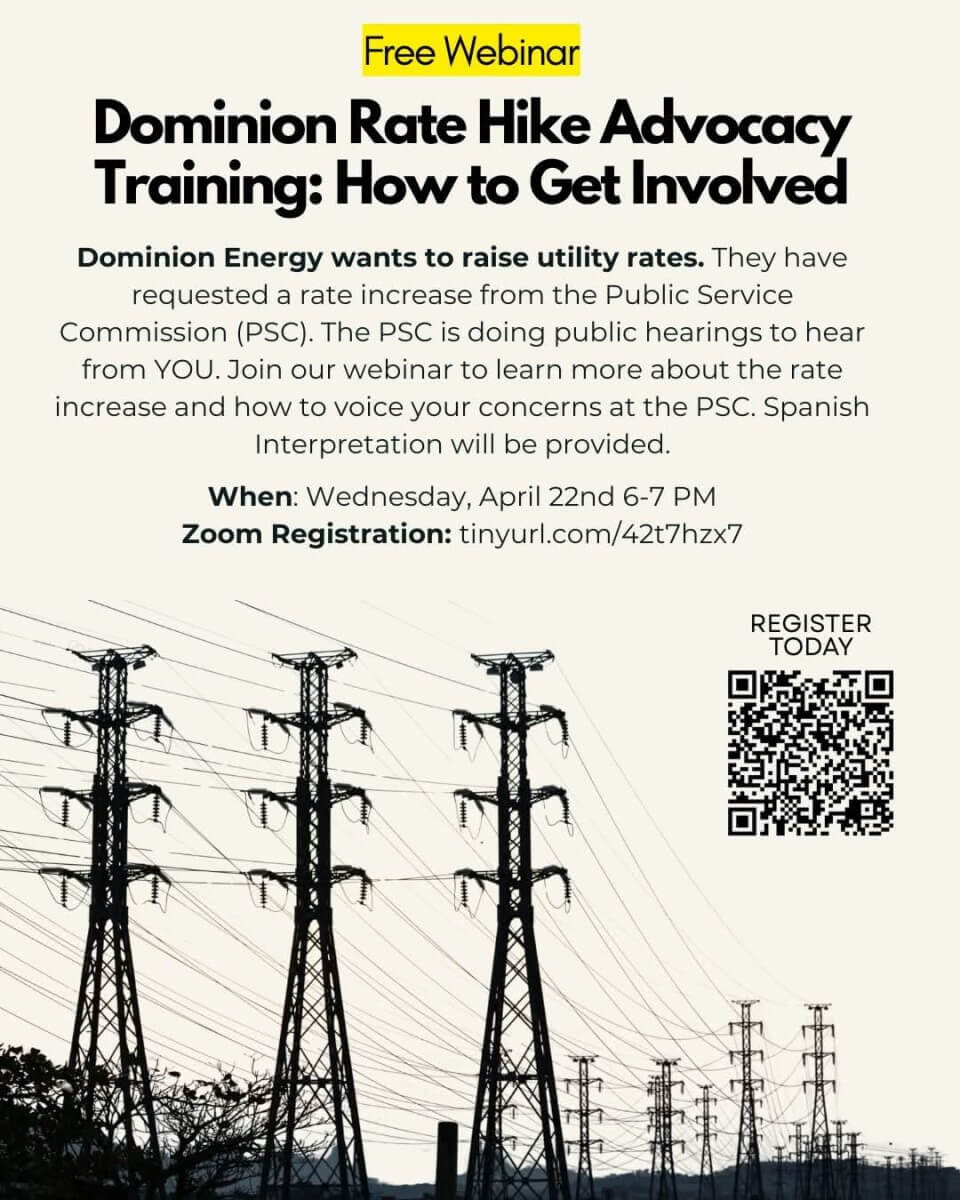 Webinar: Dominion Rate Hike Advocacy Training: How to Get Involved