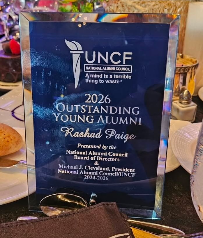 We are proud to celebrate Rashad for being named an Outstanding Young Alumni by the UNCF National Alumni Council, a prestigious honor recognizing alumni who have made significant contributions to their alma mater and community.